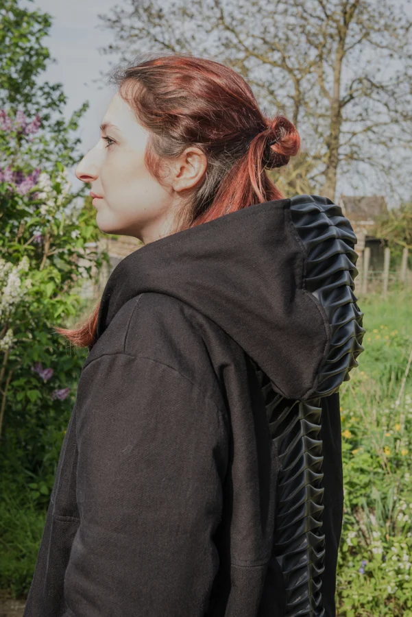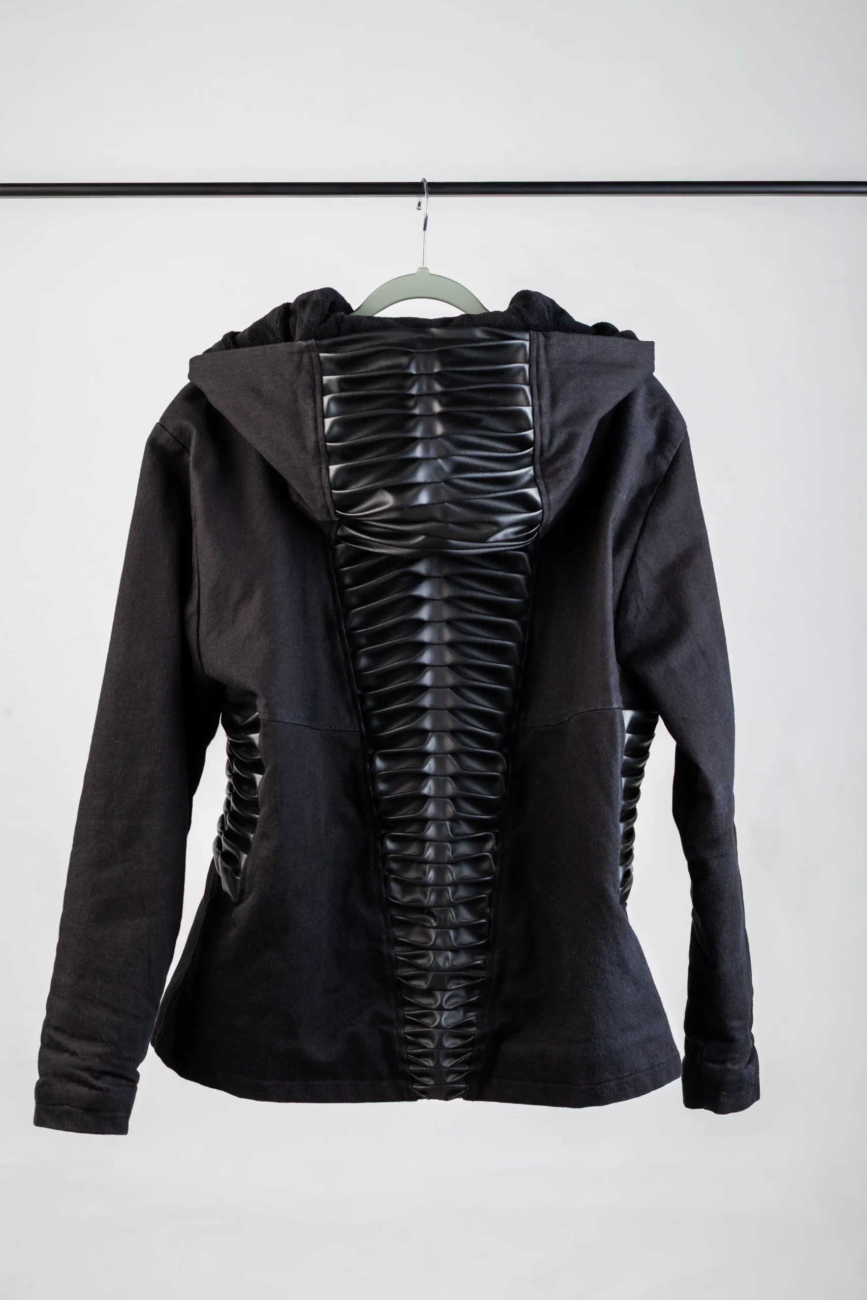 - Denim jacket with spine detail and integrated pocket.